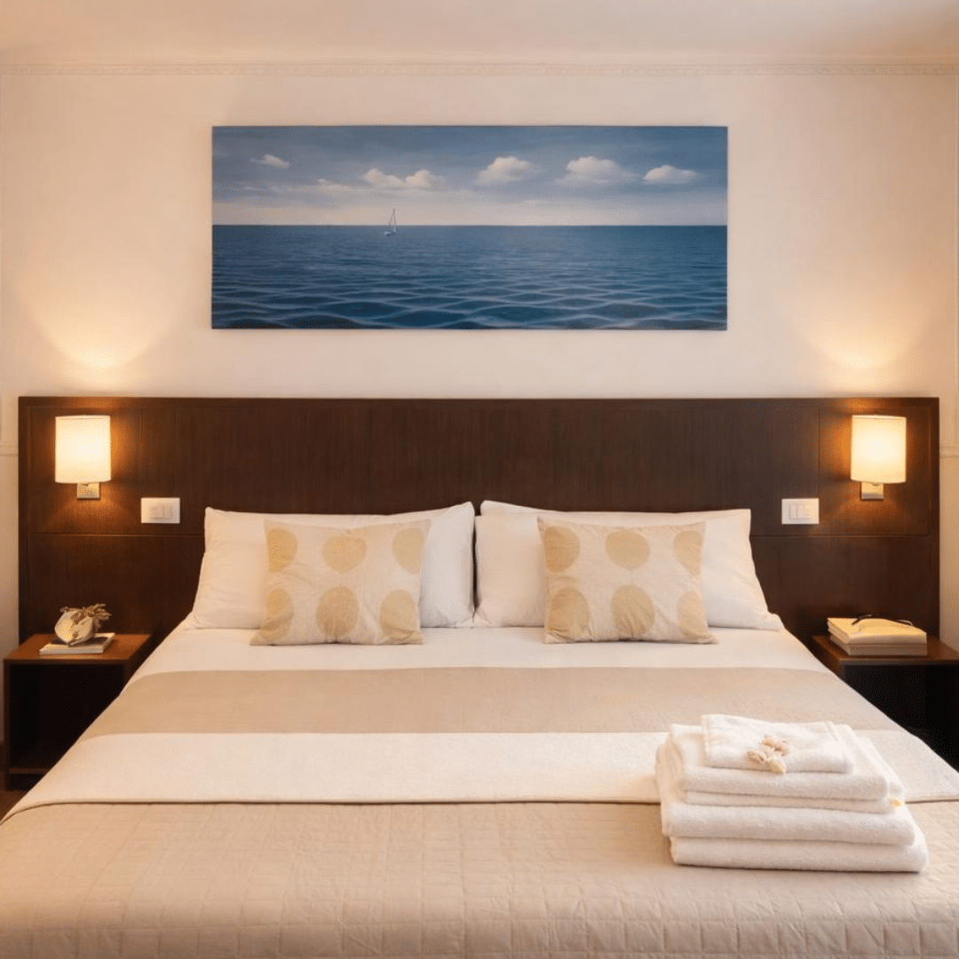 Le camere Standard di Hotel Okinawa sono la scelta ideale per chi desidera un soggiorno piacevole, pratico e rilassante. Accoglienti e curate, ti offrono un ambiente semplice ma confortevole, pensato per farti sentire subito a tuo agio. Ogni spazio è organizzato con attenzione, per garantirti funzionalità e benessere in ogni momento della giornata.